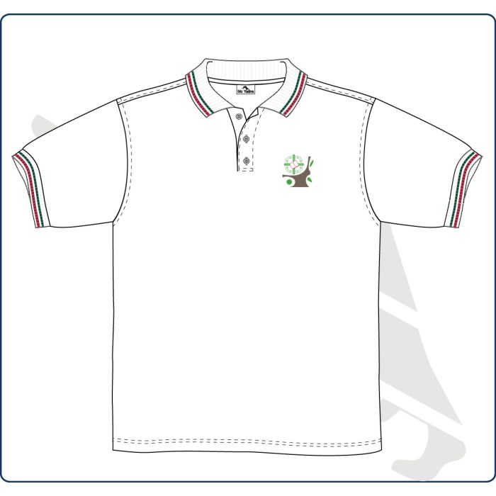 - Polo colegial de manga corta, realizado en pique con cuello y parte final de las mangas en canalé.